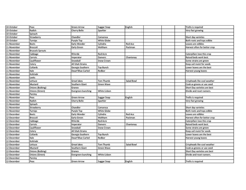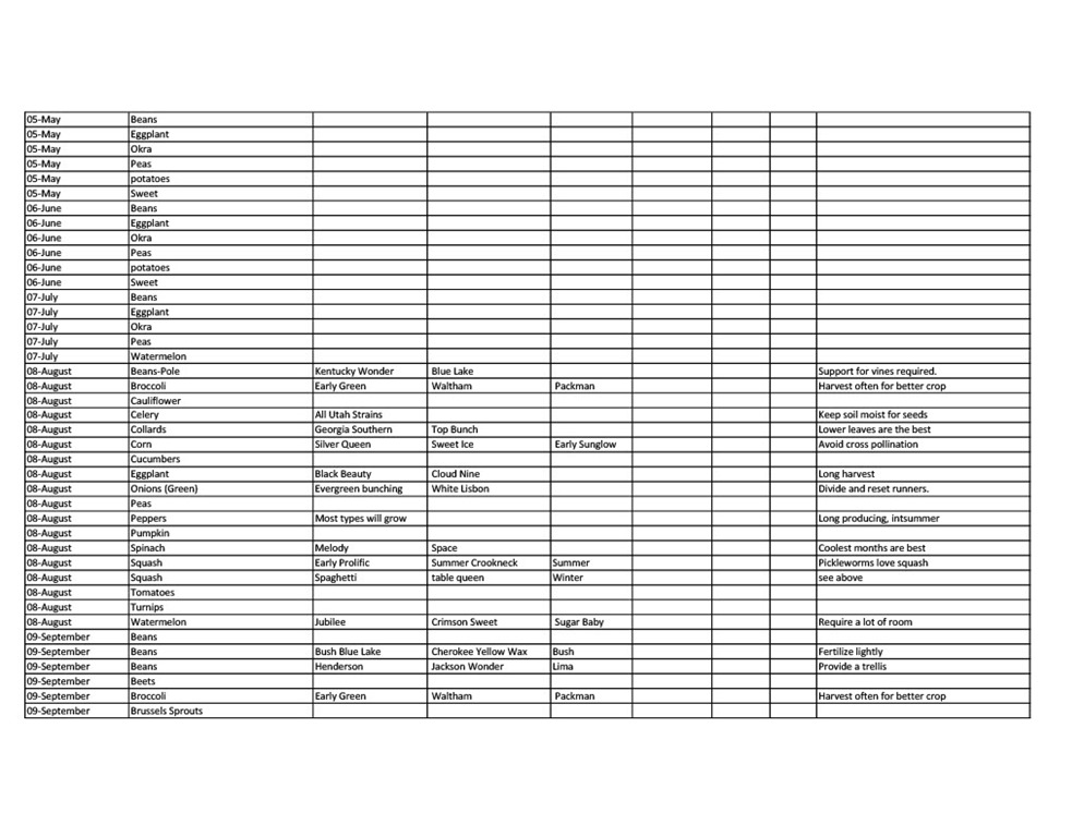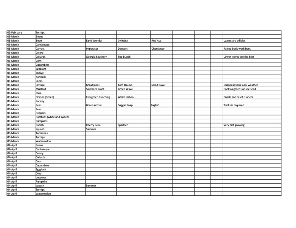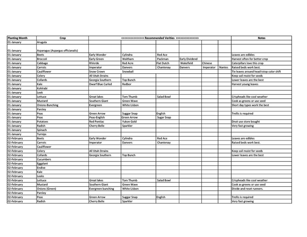 Vegetable Planting Schedule