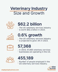 The U.S. veterinary services industry is worth $62.2 billion in 2023 after growing 3.6% annually for the last five years.[1]